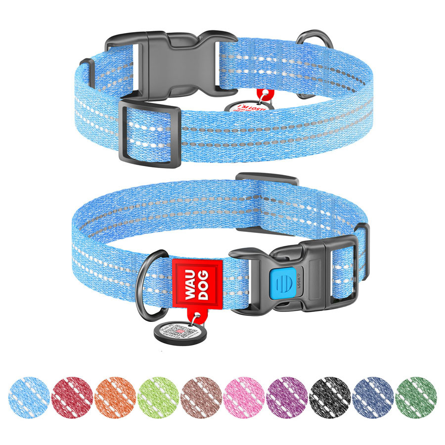 Нашийник для собак з відновленої бавовни WAUDOG Re-cotton з QR-паспортом, світловідбивний, пластиковий